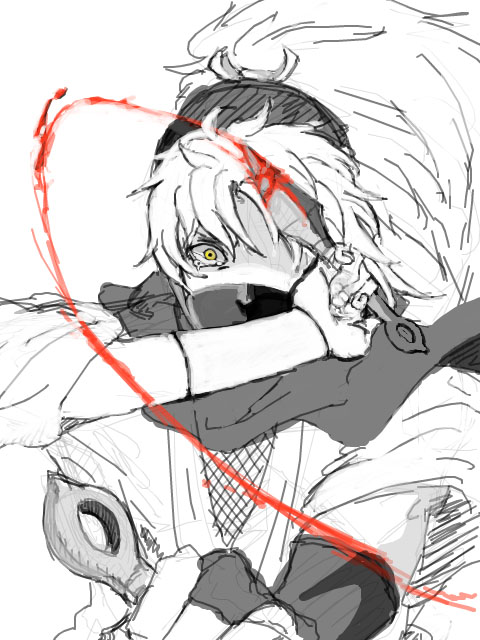 書きながらこのクナイの持ち方じゃ刺しずらくね?と思いつつも直さなかったというか下書きだから…うん…。