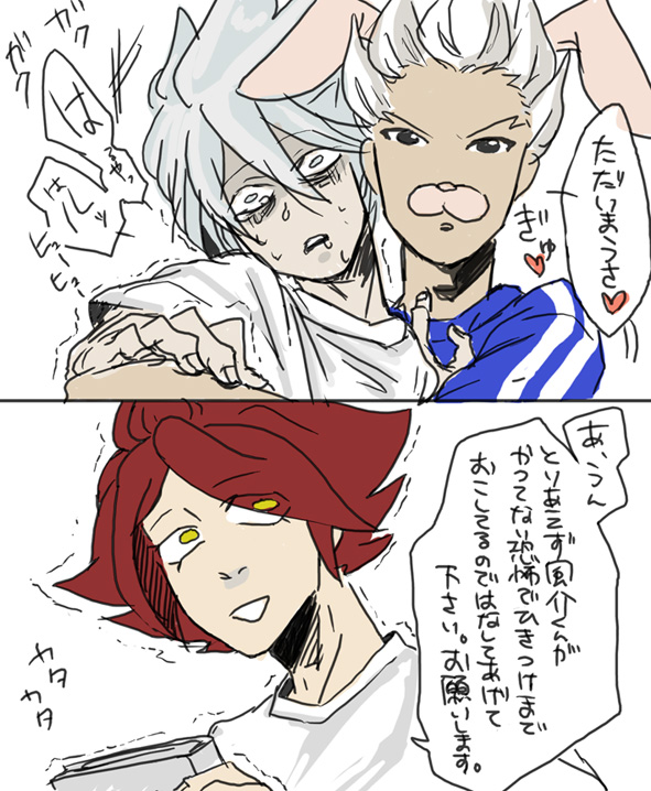 風介と春矢とアツヤにとって修也は未知との遭遇なので恐怖の対象。